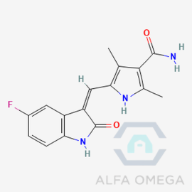 Synonyms Sunitinib Impurity-E, N-(2-aminoethyl)-5-[(Z)-(5-fluoro-2-oxo-1H-indol- 3-ylidene)methyl]-2,4-dimethyl-1H-pyrrole-3- carboxamide Hydrochloride, N-(2-aminoethyl)-5-[(Z)-(5-fluoro-2-oxo-1H-indol-3-ylidene)methyl]-2,4-dimethyl-1H-pyrrole-3-carboxamide, Sunitinib metabolite M3, FH2DP6X8LW, 873077-70-4, SU-014335, 1H-Pyrrole-3-carboxamide, N-(2-aminoethyl)-5-((Z)-(5-fluoro-1,2-dihydro-2-oxo-3H-indol-3-ylidene)methyl)-2,4-dimethyl-, N-(2-Aminoethyl)-5-((Z)-(5-fluoro-2-oxo-indolin-3-ylidene)methyl)-2,4-dimethyl-1H-pyrrole-3-carboxamide, RefChem:203153, UNII-FH2DP6X8LW, AMPK-IN-4, CHEMBL3542333
